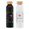 Unsere Paguera – 650 ml Aluminiumflasche mit Bambusdeckel besticht durch ihr modernes Design und ist die ideale Wahl für umweltbewusste Kunden. Diese besondere Trinkflasche, auch bekannt als „Leith Aluminiumflasche“, vereint Stil und Nachhaltigkeit. Der Bambusdeckel unterstreicht den nachhaltigen Charakter und spricht besonders Kunden an, die Wert auf umweltfreundliche Produkte legen. Die Flasche ist einwandig, besteht aus Aluminium und verfügt über einen schraubbaren, auslaufsicheren Bambusdeckel. Die matte Oberfläche bietet die perfekte Grundlage für Logos, Werbebotschaften und mehr. Wir empfehlen, die Flasche ausschließlich von Hand zu reinigen.